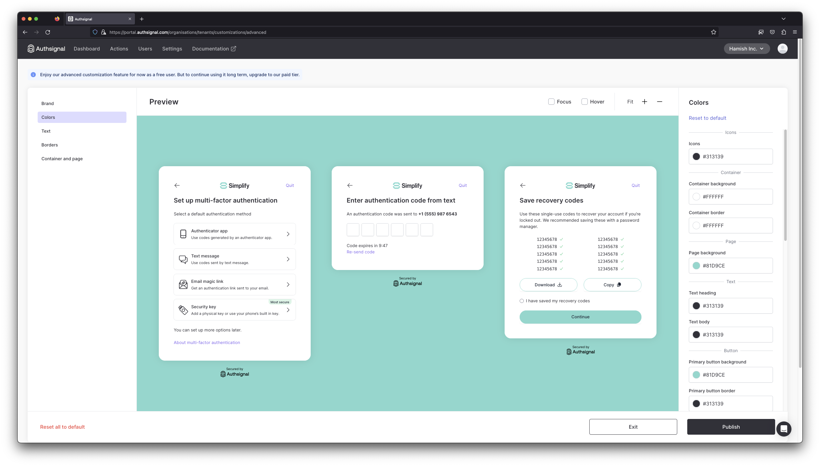 The advanced customization tool provides a preview of various pre-built UI screens.